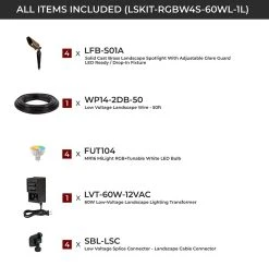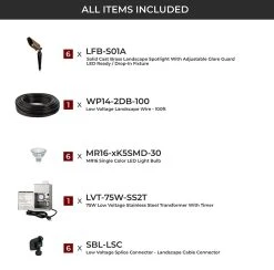 LED Landscape Lighting Kit – 6 Integrated LED Spotlights – Low Voltage Transformer – Natural White