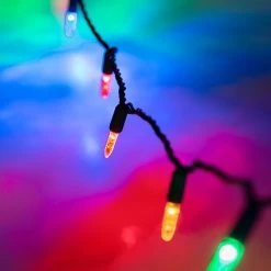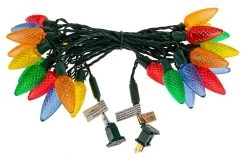C9 Christmas LED String Lights – Slim Base – 17ft – 25 Retro Faceted Bulbs – Green Wire