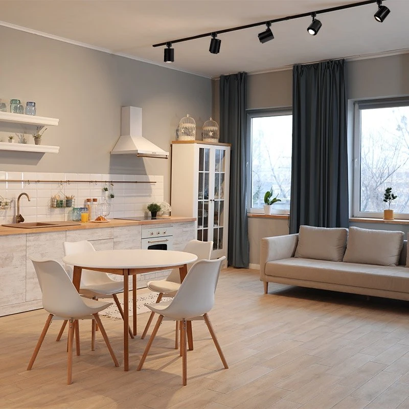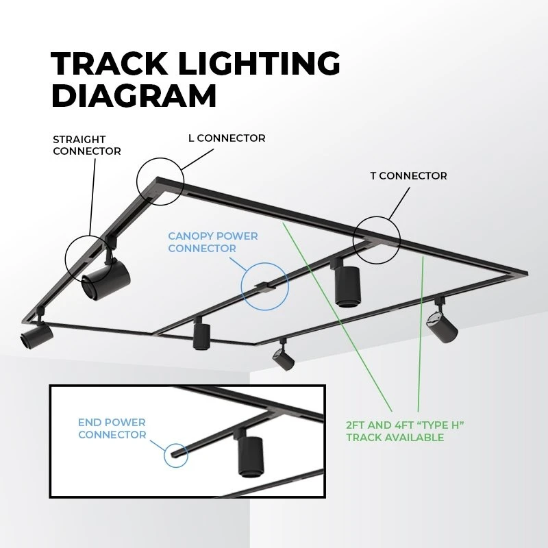 Dimmable Track Light Heads offer an adjustable, scalable lighting solution for residential and commercial locations. Structural arm provides a wide range of motion yet maintains placement for precise illumination. Long-lasting, energy-efficient, integrated COB LED provides high-quality, zero maintenance light. With standard line voltage, mount to a compatible H track system. With 90+ CRI, use one or multiple track heads to highlight artwork, architecture, retail products, or accent lighting. 60° beam angle can also provide task light for lower ceiling applications. A full suite of accessories are available to customize beam spread and track system.