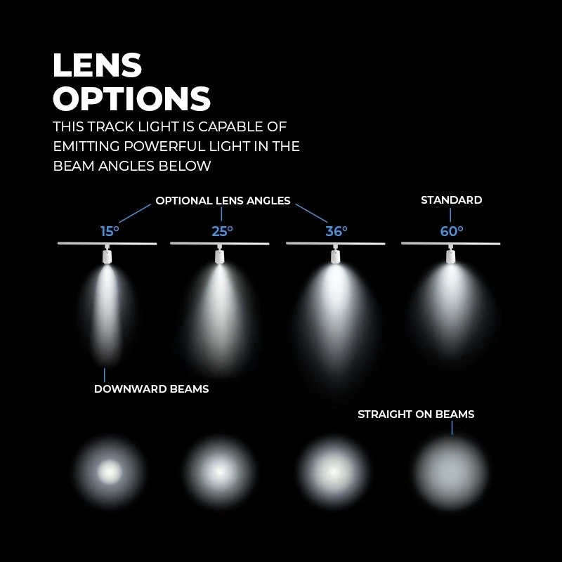 - Lenses available for 15° spot, 25° narrow and 36° flood beam angles