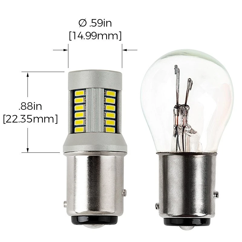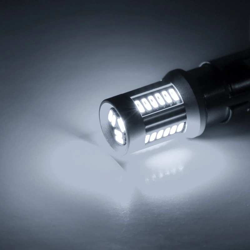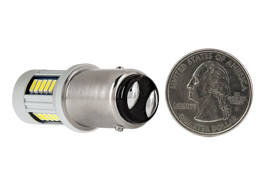 CAN Bus LED replacement bulbs can fit vehicle tail lights, brake lights, reverse lights, turn signals, and side marker lights. This 1157 dual-contact, dual-function bulb has 30 LEDs that create a 360° viewing angle for better, allover light emission with reduced hot spots. Error-free LED bulbs are designed to communicate with your vehicle’s CAN Bus computer system and prevent error messages. Tower-style design with a BAY15D 15-mm bayonet base for easy plug-and-play installation—just twist to lock in place. The energy-efficient bulb operates with in a 12-24 VDC range and is designed to last 25 times longer on your car, truck, SUV, or van than incandescent bulbs. Available in cool white, amber, and red. Not sold in pairs. Price per bulb.