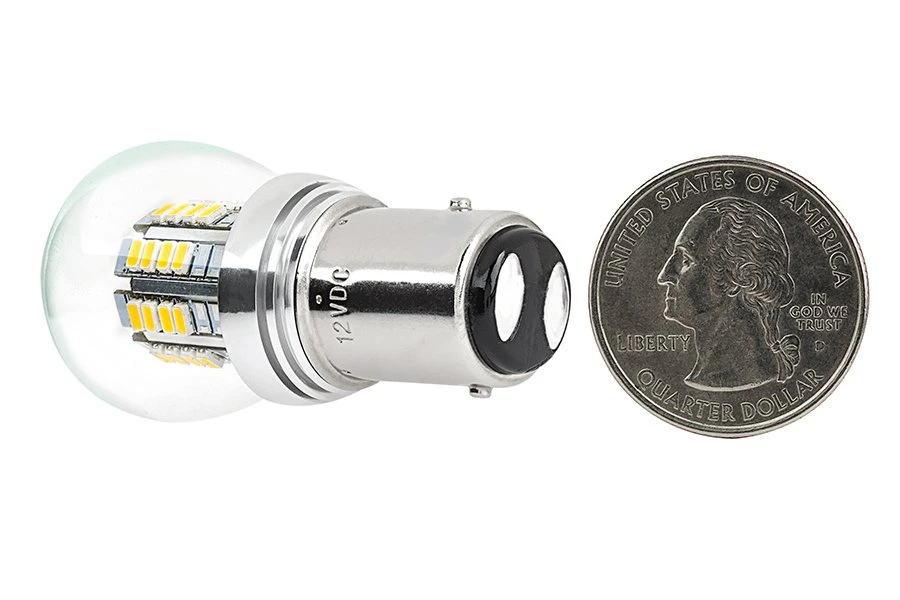 The BAY15D plug-and-play LED replacement bulb is suitable for vehicle applications. The 360° beam angle reduces hot spots and provides a wide viewing angle for all-over light emission. The stock bulb cover encloses the LEDs and gives the bulb a traditional look. Designed to last 30,000 hours- 25 times longer than incandescent bulbs- they are ideal for tail lights, brake lights, and turn signals.