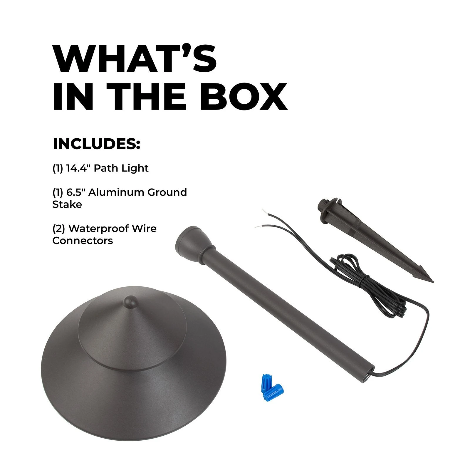 The 12V landscape LED path light features a decorative two-tier cone shade, a matte bronze finish, and corrosion-resistant construction. The durable cast aluminum fixture has integrated LEDs and a frosted polycarbonate lens for diffused illumination. An IP65 waterproof design protects internal components from the elements. Attach the lens and reflective cone shade to the post and secure the durable aluminum ground stake for installation. The landscape path light is ideal for outdoor walkways, pathways, driveways, and garden lighting.