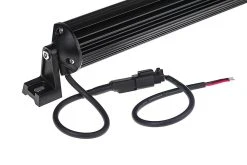 This Hyper series LED light bar has a single row of 18 LEDs that produce 3,024 raw lumens of cool white light in a 60° beam pattern. Durable and water resistant, the bar is built from an aluminum housing with a polycarbonate lens. The integral heat sink keeps the LEDs running cool, adding to their long life. Adjustable mounting brackets and installation hardware are included along with a 10” power wire.