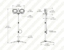 The dual-head LED work light is designed to be used with or with out the tripod. The tripod is equipped with a quick-release mount for disassembly or to use the light heads as a portable light. Two 100W adjustable light heads produce 120° of light, making the work light ideal for large, open area applications. The light head has an H-stand for stability and a carrying handle for convenience. Both light heads have a type A 5V 2-amp USB output for charging devices. Power with the 6’ power cord with a 3-prong 5-15P plug.