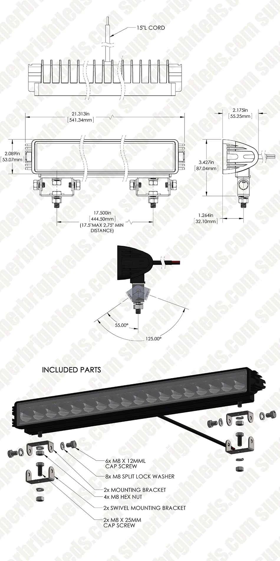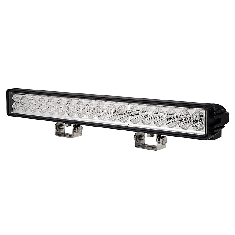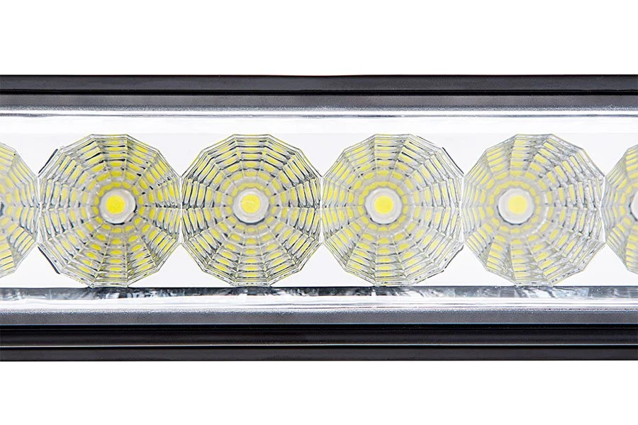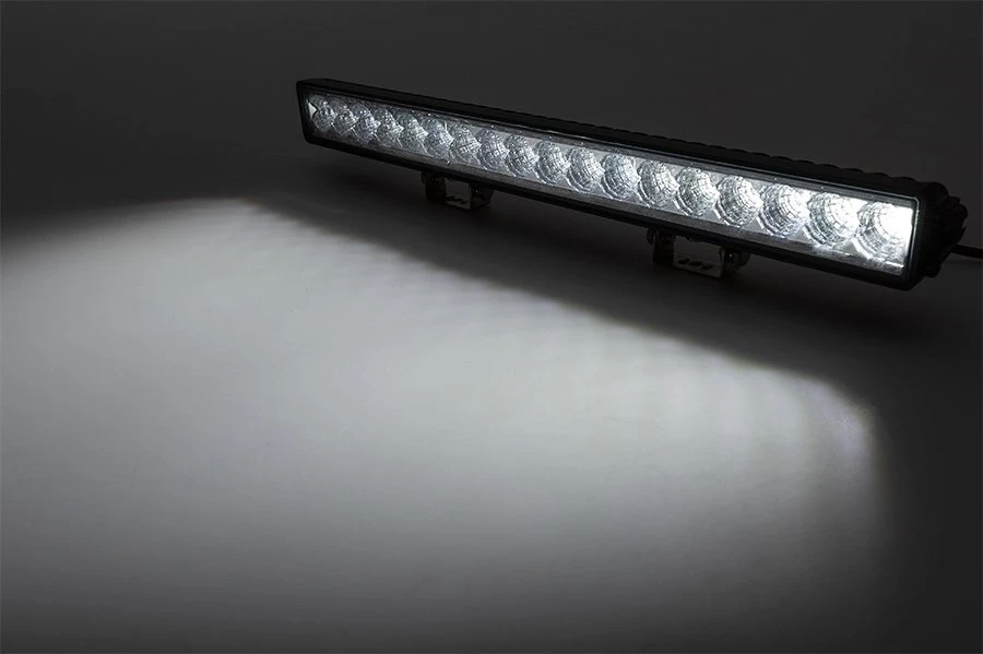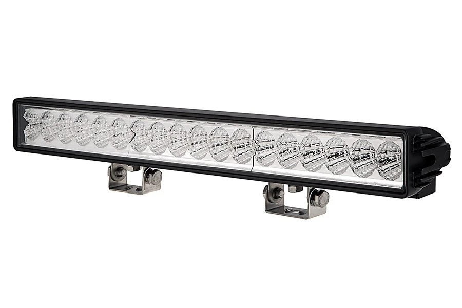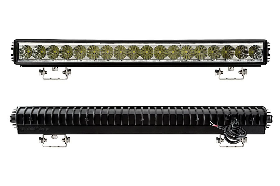 This Xtra series off-road light bar produces 4,050 raw lumens of cool white light in a 35° beam pattern. The 21” light bar is built from aluminum with a polycarbonate lens. The rugged design protects internal components from vibration and wet weather. LEDs stay cool with the integral heat sinks. Stainless steel mounting brackets and installation hardware are included.