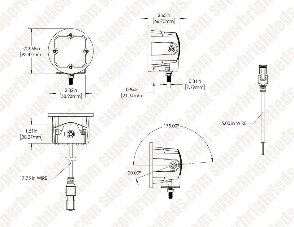 - Aluminum housing and polycarbonate lens