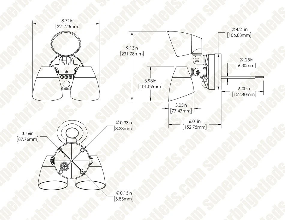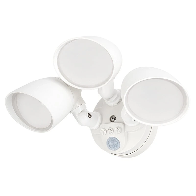 With many adjustable features, the MASL series Motion Sensor Light provides versatile illumination for residential exteriors and perimeter protection. The sensor turns the light on when motion is detected within a wide 120-degree angle, between 3 and 30 feet. Time setting adjusts ON time up to 10 minutes. The Lux setting turns the fixture on when the ambient light reaches the desired level. Or, bypass the sensor during installation for normal on/off flood light operation from a wall switch. Sealed against moisture, dirt, and insects, integrated LEDs withstand outdoor elements while requiring less energy and maintenance than equivalent PAR lamps. Wall or eave mount the lightweight fixture and rotate the three heads for desired light coverage on driveways, yards, patios, and more.