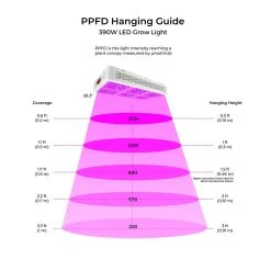 Grow better yields and higher quality plants with GLR series 390W Grow Light. 12-band Full Spectrum LEDs and selectable VEG and BLOOM can support a variety of plants through all stages of growth. Constructed with steel housing and integrated cooling fans, horticulture light with stands moisture and seamlessly ventilates heat. Remove the hassle of harmful pesticides, bugs, outside fans, and bulb replacement by installing this versatile fixture. Hang it with included hardware in any greenhouse, tent, or grow room, and adjust height as plants mature. Optics are designed to maximize canopy coverage and improve conditions for photosynthesis. with higher energy efficiency and light control, this LED fixture replaces up to 1000W HID.