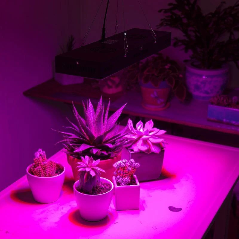 Blue (465nm) and red (625nm) LEDs are used for vegetative growth, seeding, and flowering