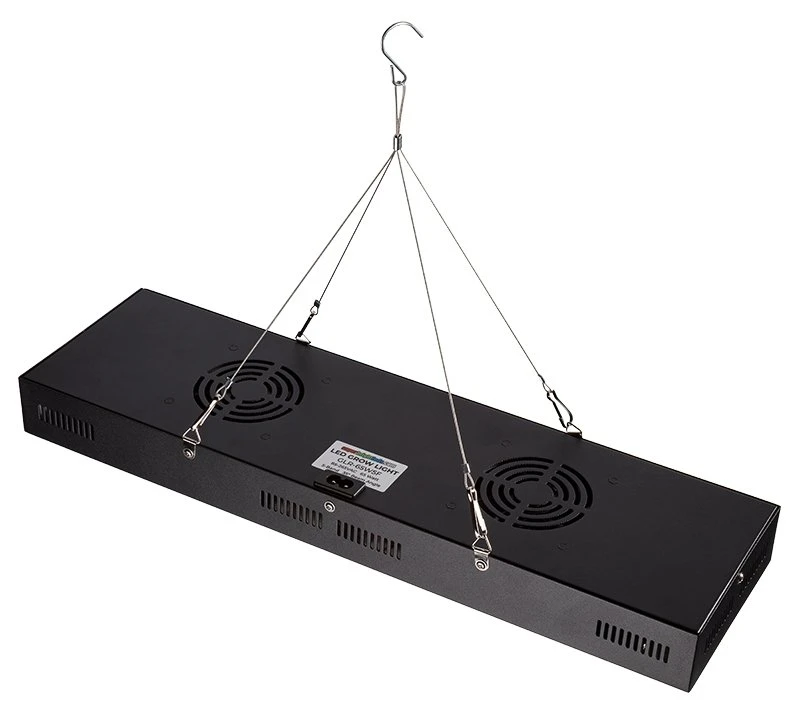 This full-spectrum LED grow light emits the perfect combination of red, blue, white, ultraviolet, and infrared light for veg and bloom plant growth. The 65-watt indoor grow light has a PAR/PPFD value of 165 μmol/m2/s. It uses significantly less energy than HPS alternatives and is designed to last 35,000 hours. Cool-running LEDs and built-in fans eliminate the need for ducting and reduce the chance of leaf damage/bleaching. The grow light is constructed of durable aluminum. It’s equipped with a power cord and comes with a 1′ hanging kit. Use this LED fixture for a range of plants and applications, including legal marijuana, horticulture lighting, indoor gardening, hydroponics, and greenhouses.