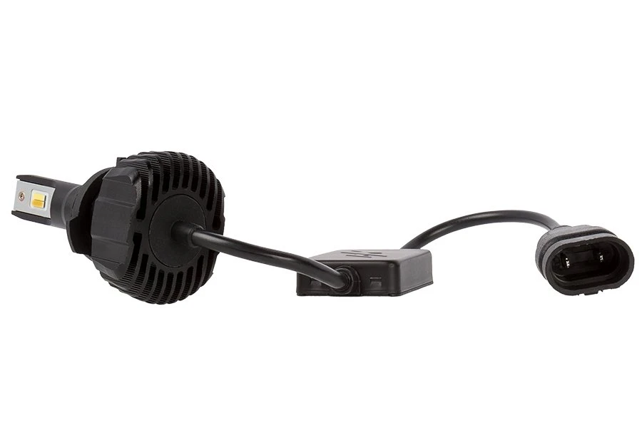 These 9006 dual-color LED headlight/fog light bulbs increase safety and visibility in any weather. Single-beam LED headlight bulbs emit 4,500 lumens of cool white or yellow light per set (2,250 lumens each). Easily switch between colors by powering the lights on/off. These bulbs have integrated or bulky braided heat sinks instead of short-lived fans to increase longevity and make installation easier in tight spaces. These CAN Bus compatible bulbs operate on 9-32 VDC. This long-lasting kit includes 2 9006 LED headlight bulbs.