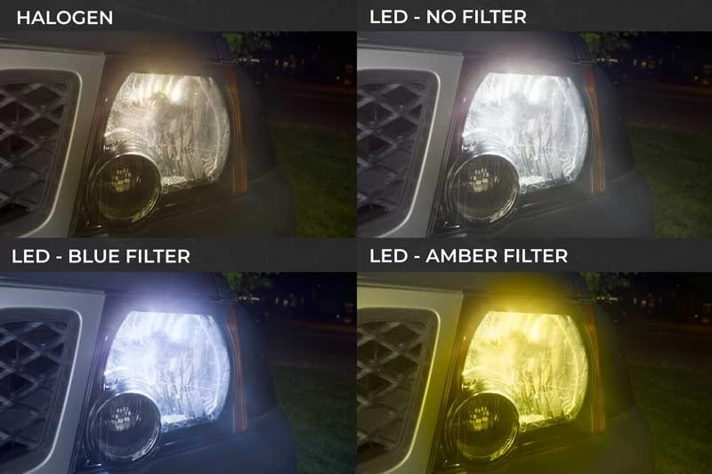Increase your safety and visibility with this 9007 LED headlight/fog light kit. Each dual-intensity LED headlight bulb comes with a glass sleeve and adhesive film options for changing the bulb’s color temperature. The bulbs emit 5,000 lumens of cool white illumination per set (2,500 each) but can emit amber or cool white light by using the sleeve and one of the optional film choices. These bulbs feature 3rd generation cooling technology. They have compact heat sinks instead of short-lived fans or bulky braided heat sinks. This allows for a longer-lasting bulb that’s easier to install in tight spaces. The LED headlight bulbs last 13 times longer than halogen bulbs. LED arrays in each bulb are designed to mimic the filament in halogen bulbs—creating a closely matched beam style. These CAN Bus compatible bulbs operate on 9-32 VDC. The long-lasting kit includes 2 LED headlight bulbs, 2 9007 adapter plugs with drivers, 2 glass sleeves, 8 cool white and amber film sleeve covers, and mounting accessories. Bulbs have been environmentally tested with film and sleeve installed. Film can be removed but not reused. Use glass cleaner on the included sleeve before applying another piece of film. Price per kit.
