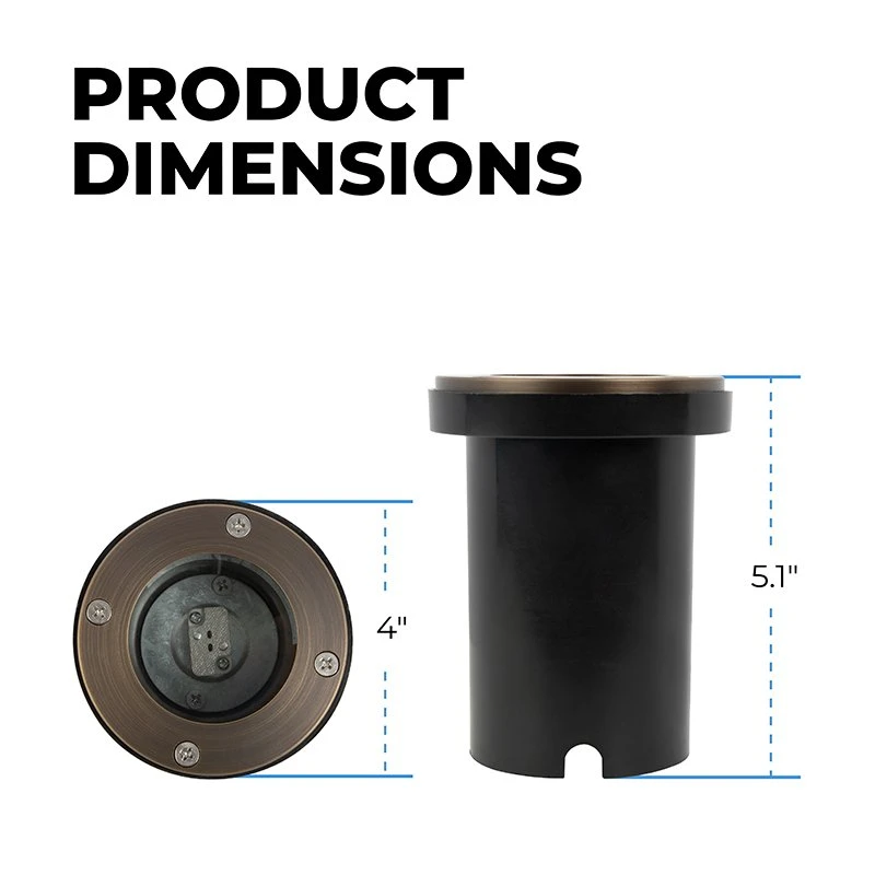 The solid brass LED-ready flat top in-ground well light is available with an MR16 bulb in ultra-warm, warm, natural or cool white. Stainless steel hardware secures the flat top and seals the glass lens to the brass housing for waterproof construction. Install the polycarbonate sleeve with good drainage for optimal fixture life. This brass in-ground well light is ideal for landscape uplighting of trees, gardens, and building facades.