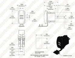 This dual USB rocker switch adapter lets you charge your cell phone, tablet, iPod, or other device and is illuminated by blue LEDs when your vehicle is turned on. The USB charger operates within a wide 12-24V DC range with an output of 1 amp from the top port and 2.1 amps from the bottom port. The charger has a total output of 3.1 amps at 5 volts and has (2) 1/4″ male contact terminals to be used with 1/4″ female push-on connectors. The sealed, watertight rocker switch easily installs in industry standard panel cutouts with the included rubber gasket (optimal thickness: 0.13″, range: 0.03″ – 0.19″). For alternative mounting options, see our modular switch brackets.