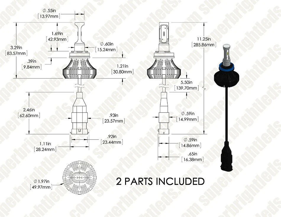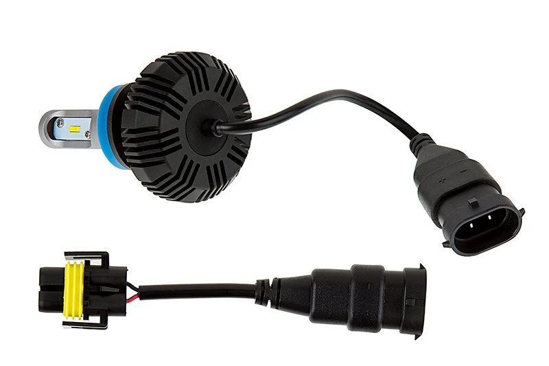 Increase your safety and visibility with this H9/H11 LED headlight/fog light kit. The single-intensity LED headlight bulbs emit 4,000 lumens of cool white illumination per set (2,000 lumens each) and feature 3rd generation cooling technology. They have integrated heat sinks instead of short-lived fans or bulky braided heat sinks. This allows for a longer-lasting bulb and easier installation in tight spaces. They also have internal drivers, which eliminates the need to mount an additional part and locate an appropriate mounting spot. The compact bulbs last 13 times longer than halogen bulbs. LED arrays in each bulb are designed to mimic the filament in halogen bulbs—creating a closely matched beam style. These waterproof, CAN Bus compatible bulbs operate with in a wide 9-32 VDC range. This long-lasting kit includes 2 LED headlight bulbs and 2 H9/H11 plugs. Price per kit.