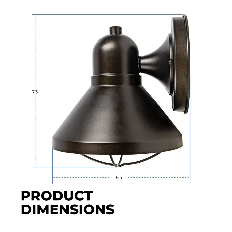 This decorative indoor or outdoor wall light is a durable, architectural lighting solution for porches, patios, entryways, and more. At 7.3” tall with a bronze finish, this LED barn light is a complement to many home, storefront, and commercial applications. The classic silhouette has a downward shade that distributes a wide beam angle while reducing unnecessary uplight. Built-in LEDs offer better energy efficiency, no need to replace bulbs and a 50,000 hour lifetime backed by our 5 year warranty.