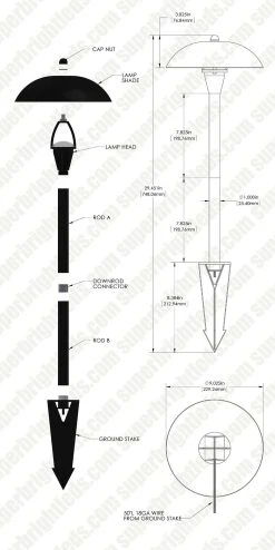 These decorative LED path lights add an upscale look to any outdoor space and are designed for use as garden lights, patio lights, driveway lights, landscape lights, walkway lights, or sidewalk lights. The black aluminum LED lights have cone-shaped hammered shades, and they emit 130 lumens of warm white illumination to increase visibility along any path. These 21″ weatherproof LED path lights have 2 rust-resistant powder coated aluminum 8″ rods. You can remove a rod or use up to 5 G-LUX accessories. Price per fixture.