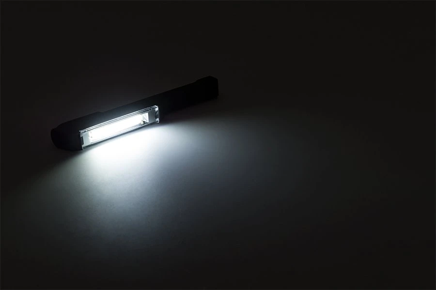The Larry™C hands-free LED flashlight packs a punch of illumination far more powerful than its small size would suggest. Using just 25 COB (chip-on-board) LEDs, the intense flashlight has an output of 170 lumens. These LED chips create significantly more light than traditional LEDs while running cooler for a longer lifespan. Use the 180° rotating magnetic clip to free your hands and aim light where it’s needed. A reinforced dark grey plastic housing features a non-slip grip but is also water and impact resistant. The long-lasting LarryC is designed for up to 6 hours of use and includes 3 AAA batteries.