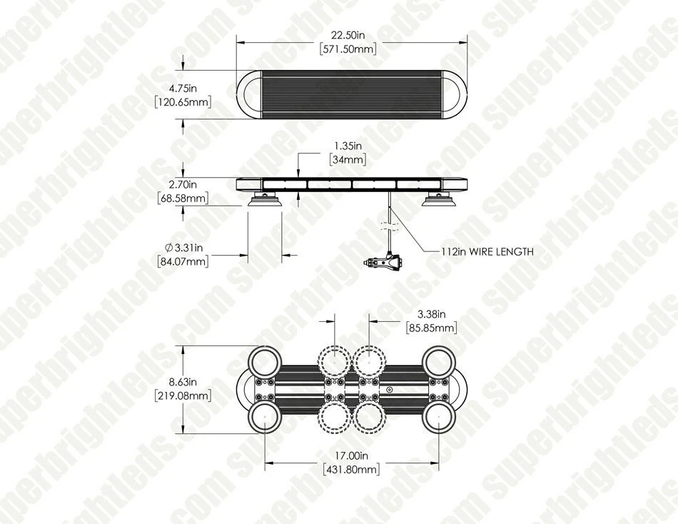 The 22β LED Light Bar with single or dual-color operation is available with 26 flash patterns for strobe, warning, and hazard lighting applications. The pre-installed flash patterns have various strobe light options and one βsteadyβ option. A memory function retains the pattern used before the light bar was powered down. Mount using the included magnet mounting brackets with a silicone cover to prevent scratching the vehicles paint. Included male 12V outlet accessory (cigarette lighter) has an on/off switch for easy operation.