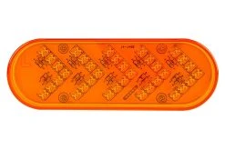 Designed to accept industry standard 3-pin plugs, this 6” oval sequential arrow LED light is for use as a turn signal light. Mounts flush with a compatible grommet, bezel, or flange. Turn mode sequentially flashes 5 arrows starting from the center outward. This turn light boasts 35 high-flux LEDs that operate with in a wide 10-30V DC range and consumes 90% less energy than incandescent lamps. Sonically sealed polycarbonate lens and weatherproof housing. Lifetime warranty on all truck/trailer lights. Dimensions: 6.49”(16.472cm) x 1.86”(4.737cm) x 2.32”(5.893cm)