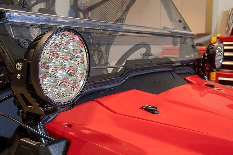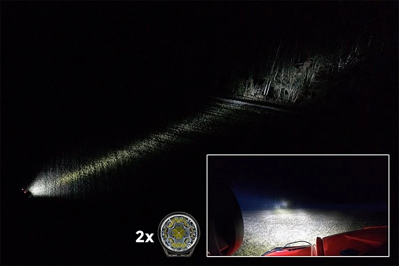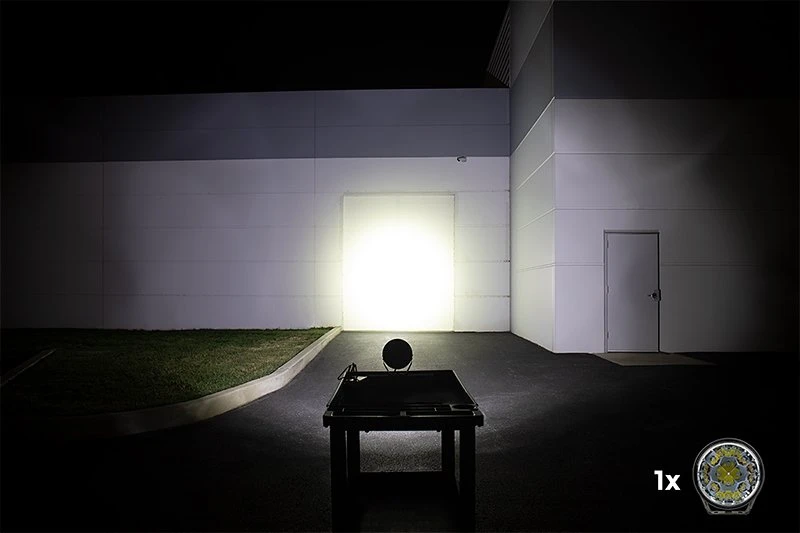 OR series 7″ LED Work Light projects a powerful beam with high speed visibility and maximum forward distance. Supplement wider beam driving lights and illuminate farther down a trail or road with this long-range spot light. It throws a narrow 4° beam pattern over half a mile, to penetrate dark off-road or rough work environments. Heavy duty construction includes die-cast aluminum housing and polycarbonate lens, sealed against moisture and impact-resistant. Mounting brackets and hardware are included for quick, secure installation on powersports, security and law enforcement vehicles, trucks, boats, and more.