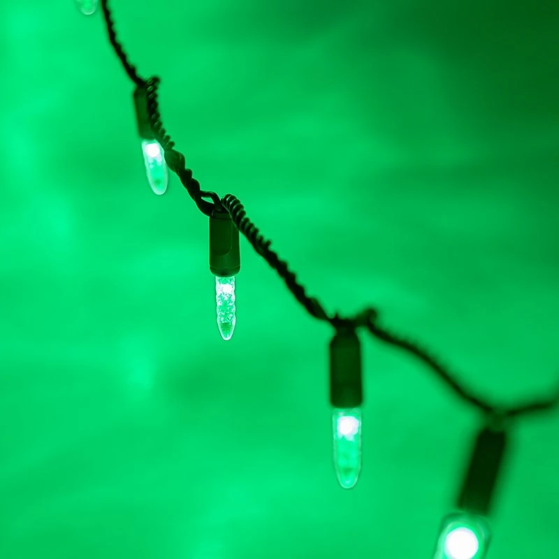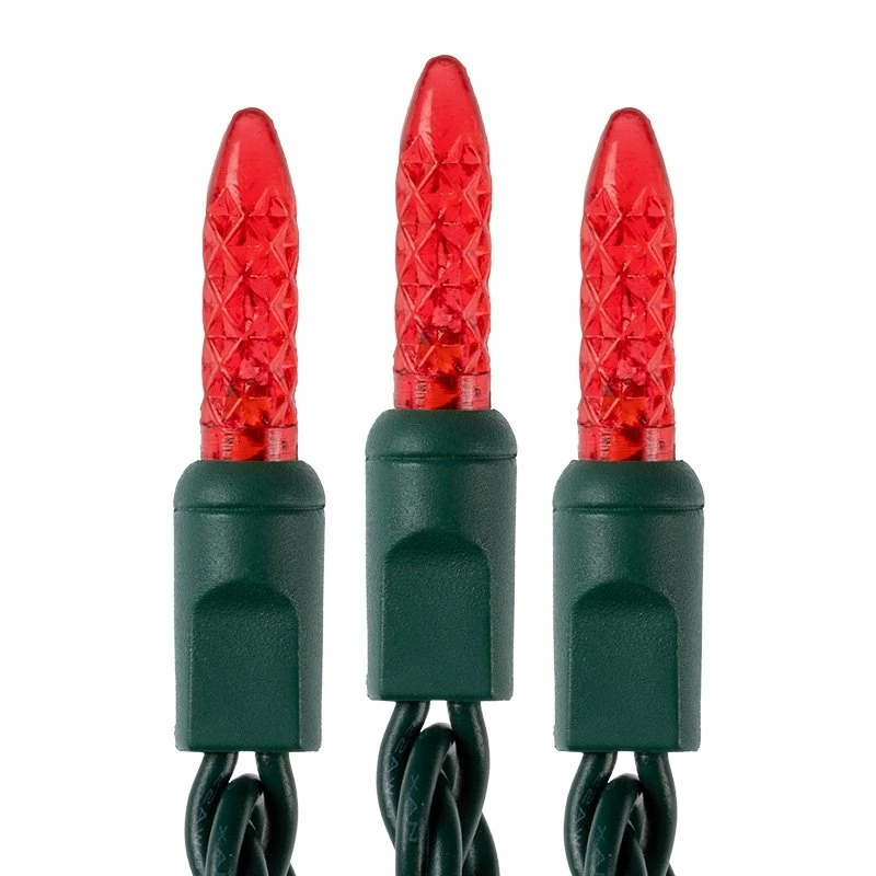 These mini LED Christmas lights have 50 faceted M5 bulbs. Connect up to 40 strands together. The 25′ strands (24′ lighted length) have 6″ bulb spacing, green wire, and are individually fused to prevent multiple blown strands in the event of a power overload. Individual bulb failure will not cause others to fail. These LED string lights consume 90% less energy than traditional incandescent strands and last 25 times longer. Each shatterproof bulb is made into the strand (not removable), which eliminates the chance of corrosion. Use these string lights indoors or out for anything from Christmas, Halloween, and Valentine’s Day to party and patio lighting. Strands are available in blue, red, green, warm white, and pure white colors.