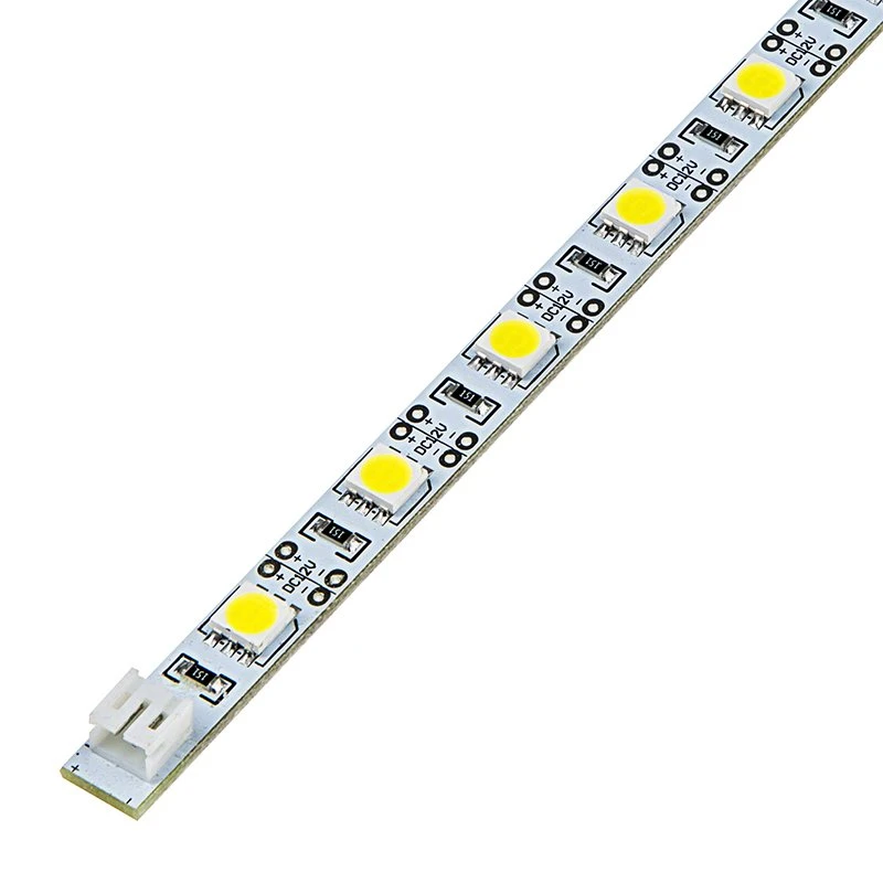 Rigid linear LED light bars are an extremely versatile solution for a variety of lighting needs, such as cabinet lighting, under-cabinet lighting, cove lighting, task lighting, bookshelf lighting, showcase lighting, cupboard lighting, or for other indoor applications where space is limited. These 1-7/8′ light bars use 5050 SMD LEDs to emit up to 690 lumens of cool white, natural white, warm white, blue, or red illumination. The non-weatherproof light fixtures have 12 VDC operation and can be cut into 1-LED segments. Easily join up to 10 fixtures together with compatible interconnect cables (sold separately).