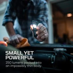 The NEBO SLIM MINI is an ideal rechargeable pocket flashlight for everyday carry. This compact EDC flashlight has two modes. High mode delivers up to 250 lumens with a two-hour run time; low mode gives 25 lumens with a 10-hour run time. The light includes a USB-C to USB-A charging cable for convenient recharging. The anodized aircraft-grade aluminum body is durable and lightweight with an ultra-thin profile for convenient carry. The SLIM MINI has a steel pocket clip for secure attachment to your belt, bag, or backpack.