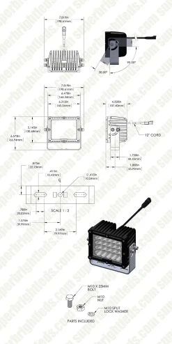 Off-road LED work / spot light produces a 30° spot beam pattern at 9.400 lumens. IP67 rated waterproof and shock-resistant aluminum housing to protect against extreme weather conditions. The integrated heat sink allows LEDs to run cool, which leads to a longer life span. Mounts easily on off-road vehicles, trucks, and marine vehicles with the universal stainless steel adjustable U bracket.