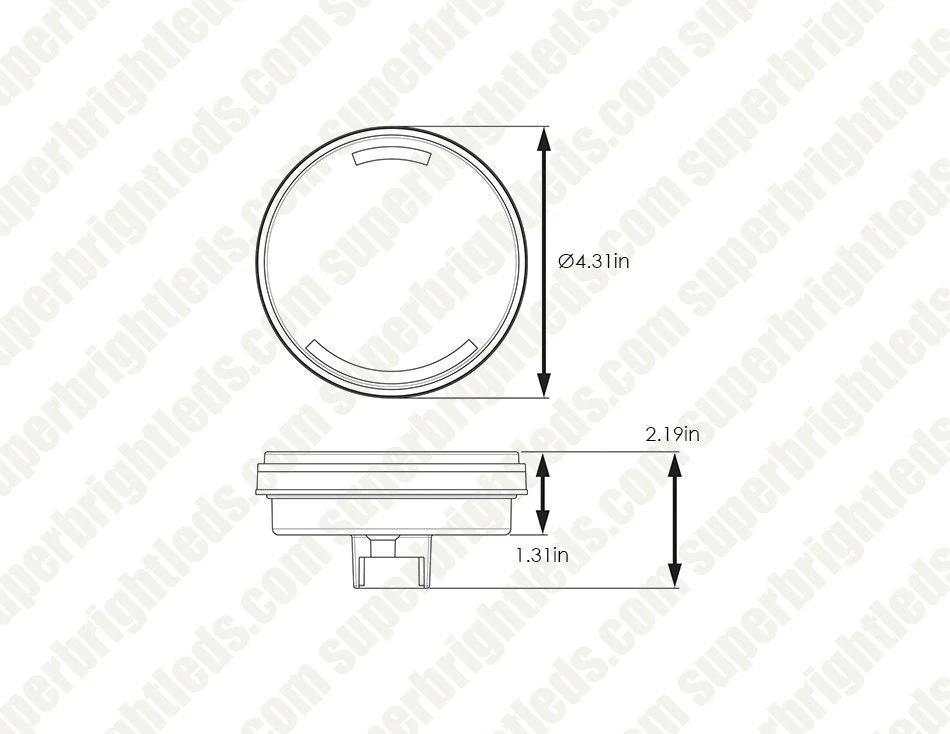 The 4″ round GloLight LED trailer tail light by Optronics features waterproof construction for stop light, turn signal, and tail light applications. The light is constructed with durable polycarbonate and has an IP67 waterproof rating. Connect using the PL-3 connection. Recessed mount with grommet (sold separately).