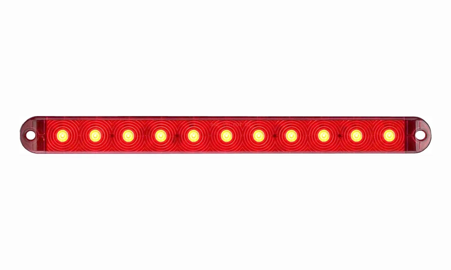 The red Optronics Thinline LED light bar can be used as a stop, turn, and tail light. Constructed of a durable polycarbonate lens and housing. Equipped with 11 LEDs. Pigtail connection.