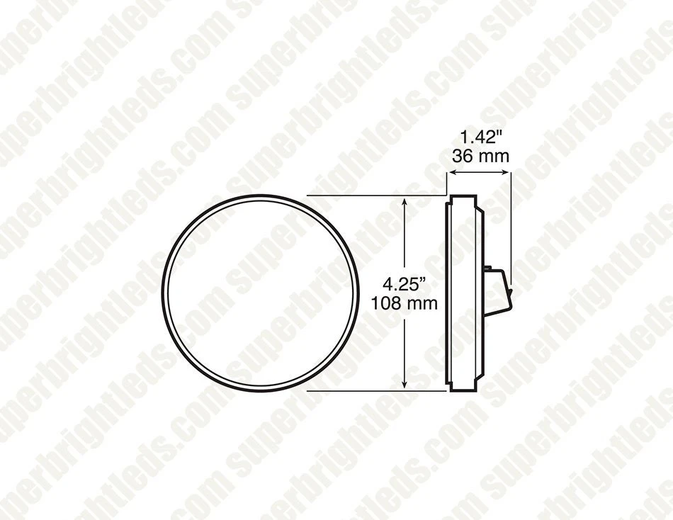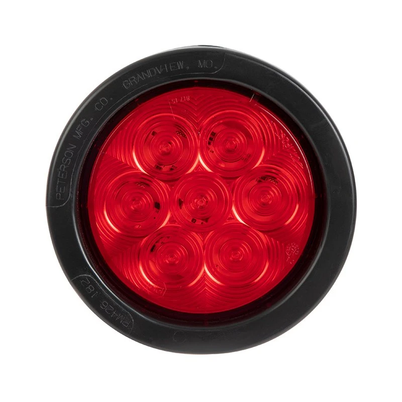 The Peterson LumenX 4″ round LED combination tail light can be used as a brake, tail, and turn light. The voltage regulation provides voltage protection and consistent light output over a wide voltage range. The light is welded to the flange, forming a single unit and creating a watertight seal. Recess mount using the included grommet and plug. Equipped with 7 LEDs. Connect using the integrated 3-pin AMP connector.