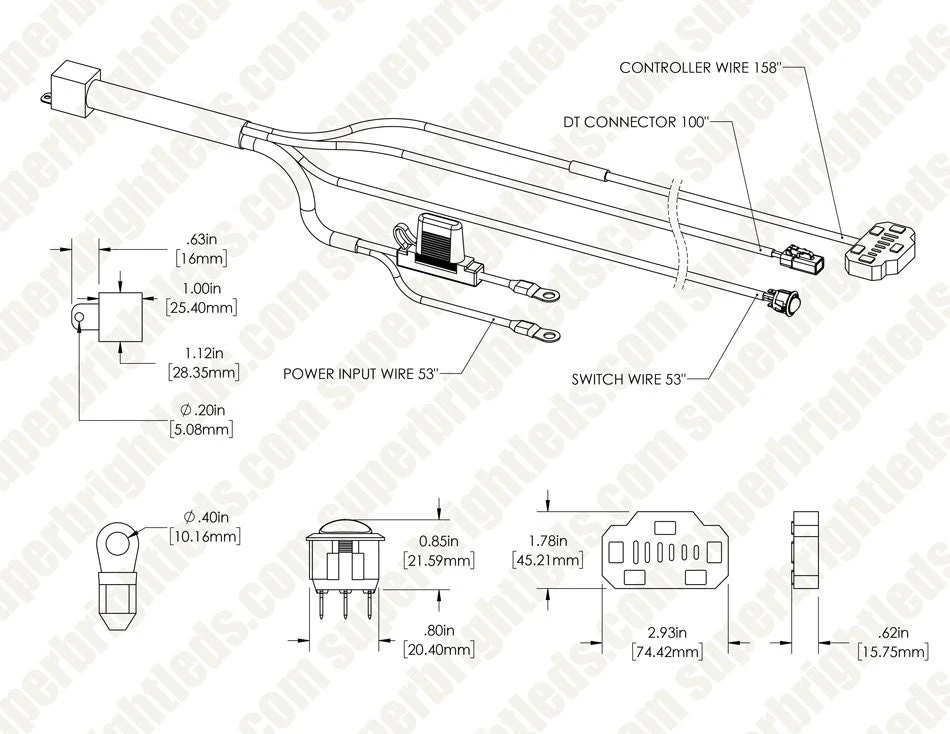 - Wiring harness included (controller, on/off rocker switch, relay, in-line fuse)