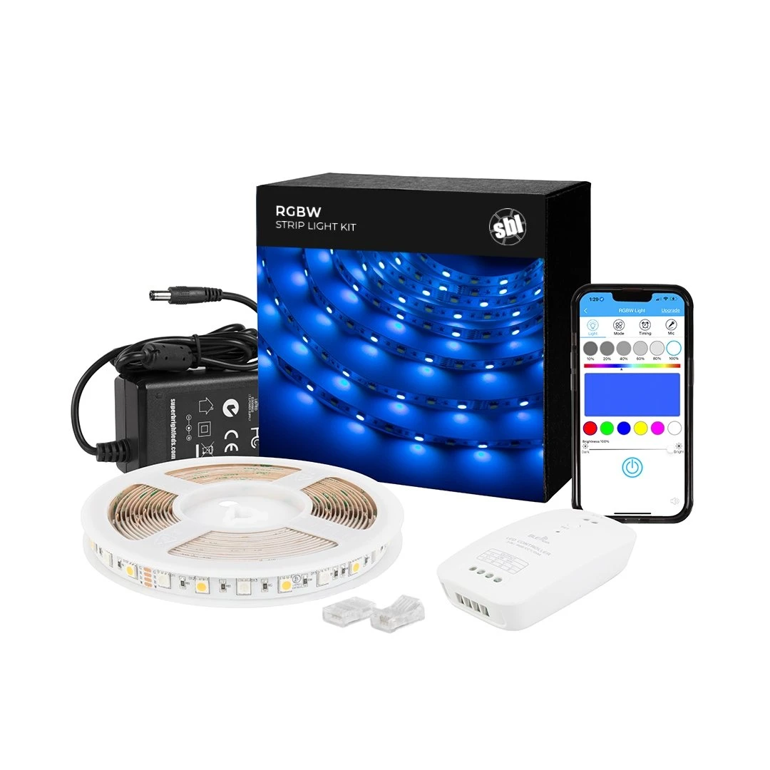 Our in-house lighting specialists developed this LED strip kit with you in mind. Each kit includes everything you need for simple, stress-free installation and use. Use solderless clamps to quickly and safely connect segments of LED strip tape with out the hassle of wire stripping or splicing. Long-lasting 3M™ adhesives ensure easy mounting to virtually any surface. Use the Open-Lit smartphone app and bluetooth controller to customize color modes, brightness, speed, and timer settings. Open-Lit available for iOS and Android devices.