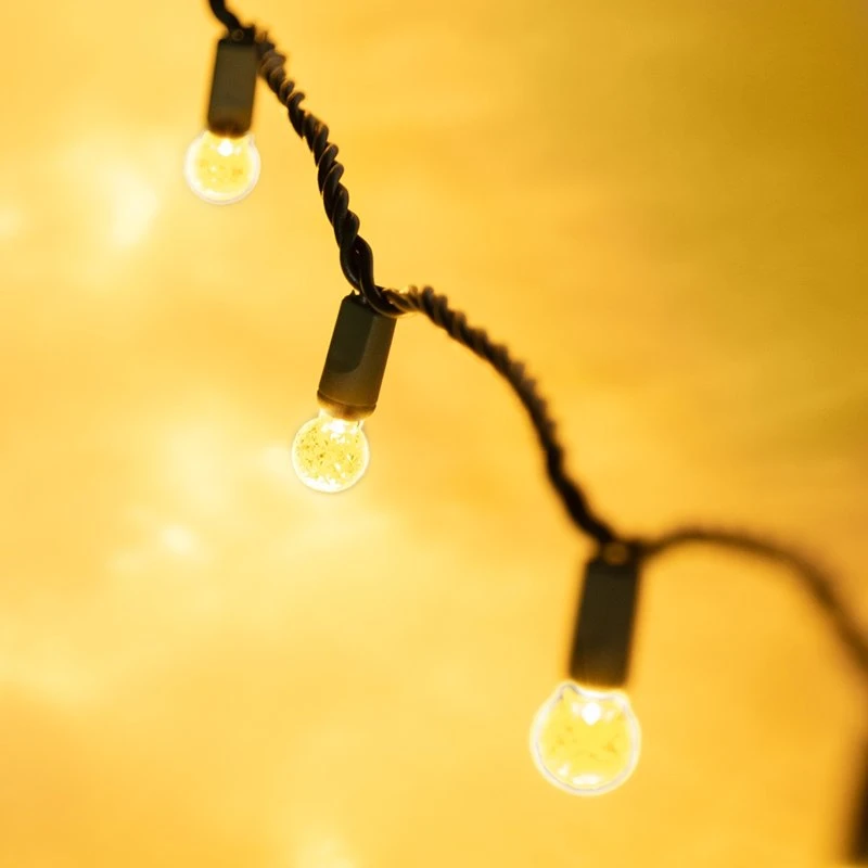 These round mini LED Christmas lights have 50 faceted G12 bulbs. Connect up to 40 strands together. The 25′ strands (24′ lighted length) have 6″ bulb spacing, green wire, and are individually fused to prevent multiple blown strands in the event of a power overload. Individual bulb failure will not cause others to fail. These LED string lights consume 90% less energy than traditional incandescent strands and last 25 times longer. Each shatterproof bulb is made into the strand (not removable), which eliminates the chance of corrosion. Use these string lights indoors or out for anything from Christmas, Halloween, and Valentine’s Day to party and patio lighting. Strands are available in blue, red, green, purple, orange, yellow, warm white, and pure white colors.