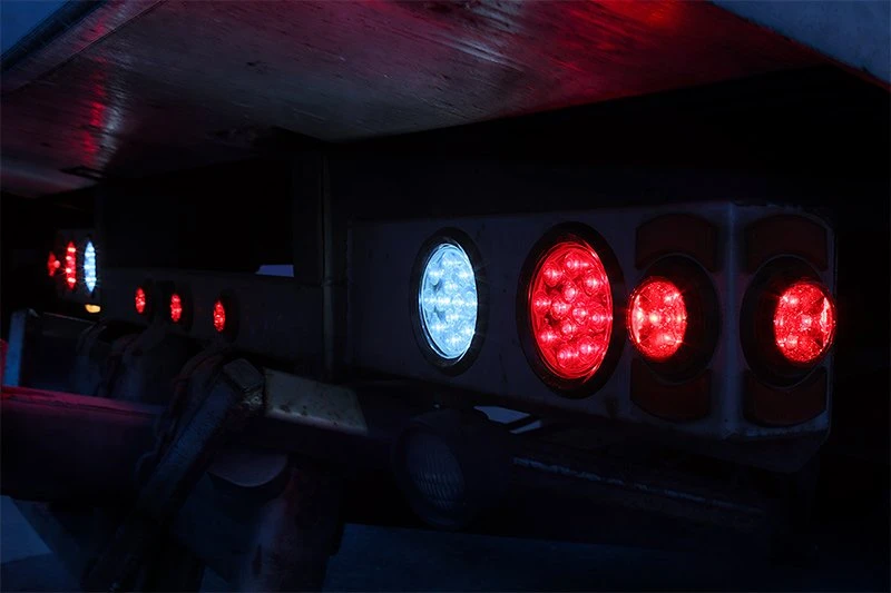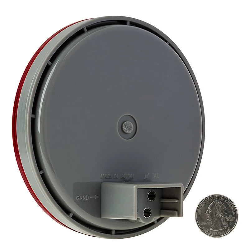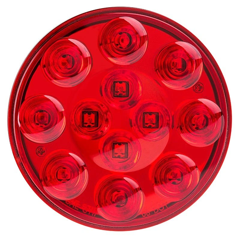 This 4″ round 12 LED light meets DOT FMVSS 108 requirements for vehicle signal lighting such as a tail light, turn light, hazard light, stop light, reverse, or backup light. The light has a sonically sealed polycarbonate lens and weatherproof housing for harsh outdoor conditions. Flush mounts easily with a separate grommet or flange and 3-pin connector to provide stop, turn, or tail lights on vehicles (see accessories). Amber and red are Tail, Stop and Turn with GRND. White is Stop and Turn only with GRND.
