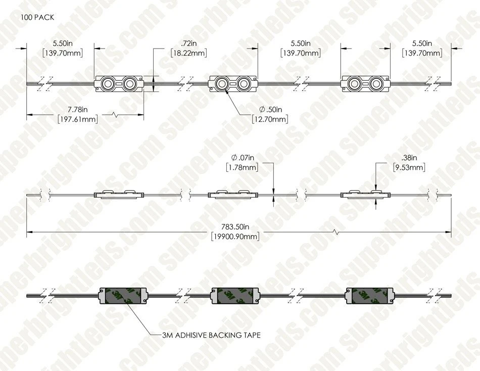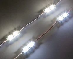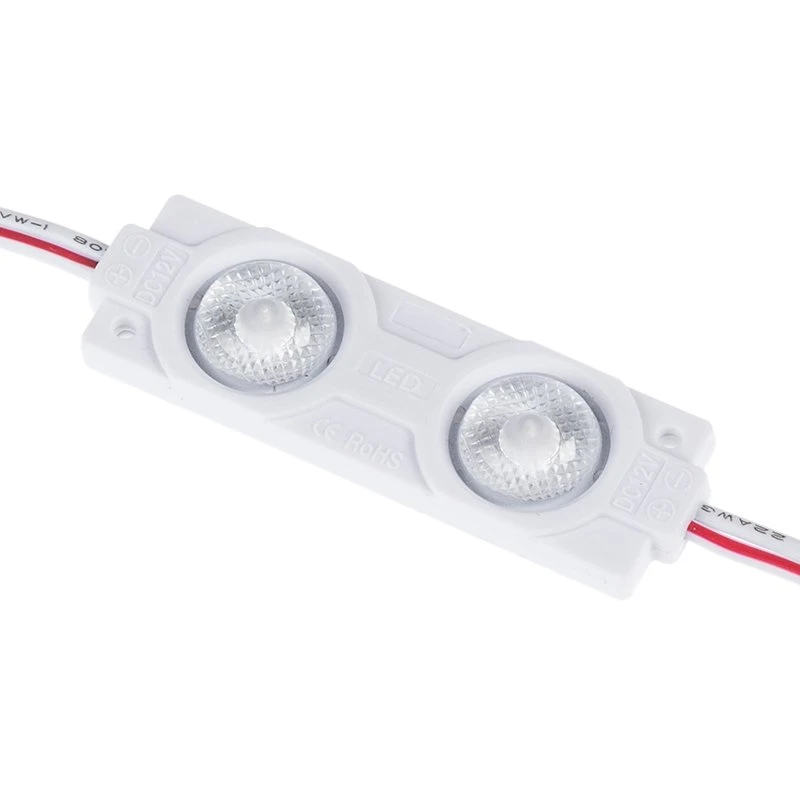 With high quality optic design, the SMCC2 series LED Modules provide a wide beam of light ideal for sign backlighting, channel letters, stage construction, and more. Each module contains 2 LEDS, and a lens to ensure a smooth, broad illumination free of hotspots. Screw holes allow for more permanent mounting, while 3M™ adhesive backing simplifies set up and take down for trade shows displays. A flexible solution for sign and display builders, electrical contractors, or OEMs, these modules have sealed weatherproof housing to be used in an array of lighting design applications.