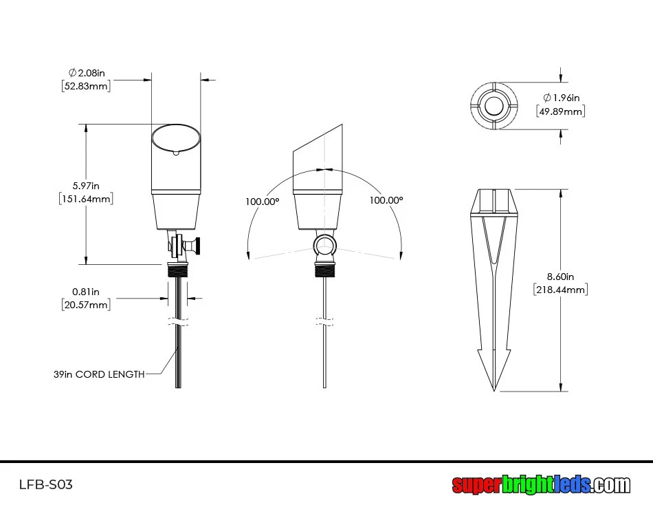 - Solid brass construction with spherical glass lens