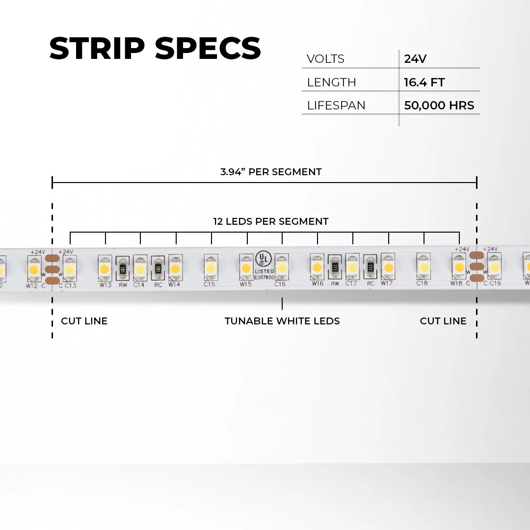 - (1) Tunable White LED Strip Light/Tape Light – 24V – 350 Lumens/Ft