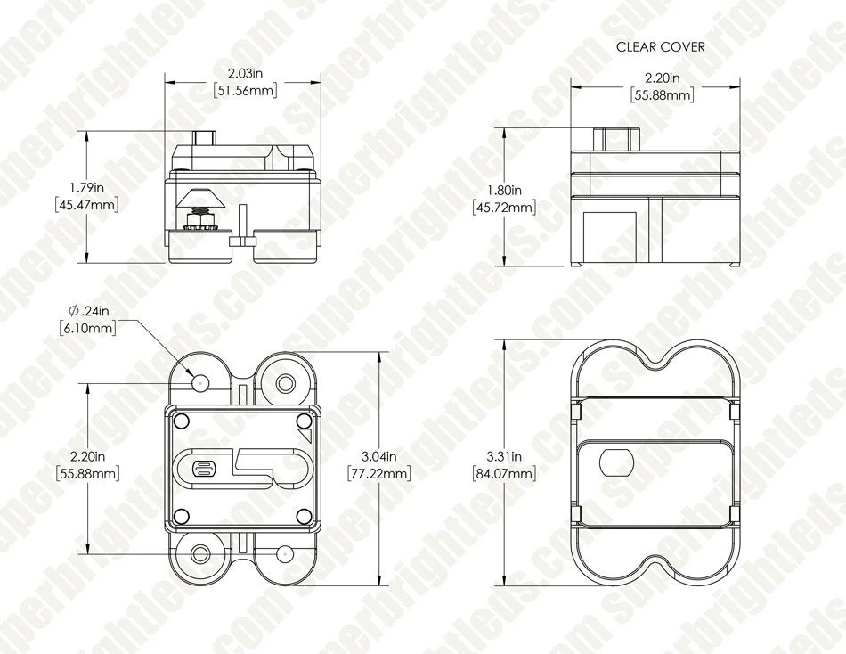 - Black die-cast aluminum power distribution block, mount under-the-hood for ease