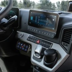 - Dimmable black die-cast aluminum switch panel with blue or green backlight for illumination
